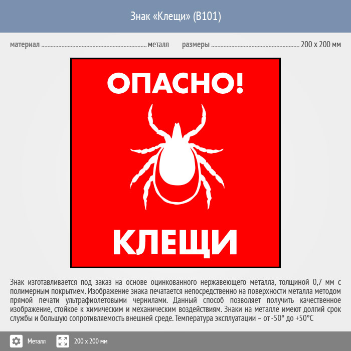 Знак «Опасно! Клещи», B101 (металл, 200х200 мм) в Пензе купить