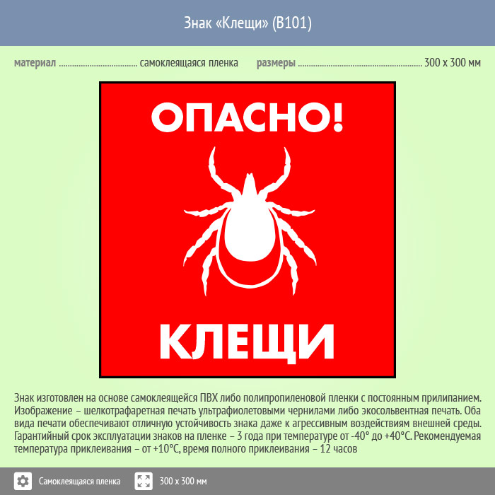 Знак «Опасно! Клещи», B101 (пленка, 300х300 мм) в Пензе купить