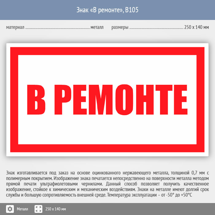 Знак «В ремонте», B105 (металл, 250х140 мм) в Пензе купить