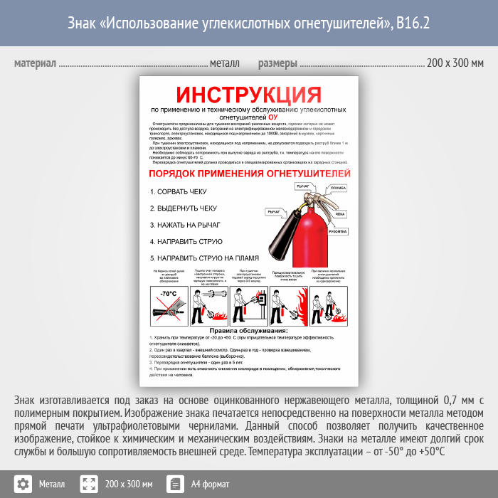 Знак «Использование углекислотных огнетушителей», B16.2 (металл, 200х300 мм) в Пензе купить