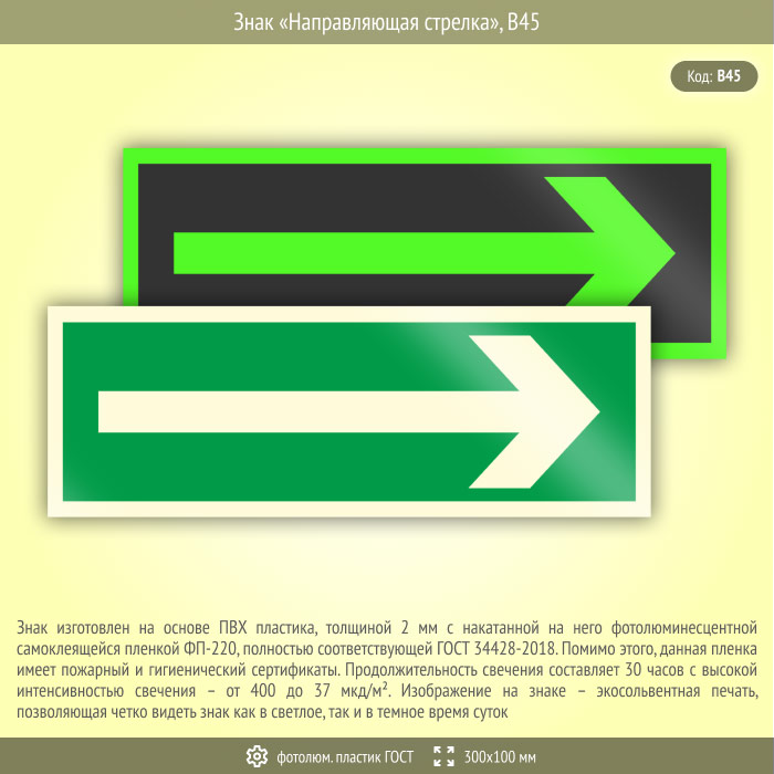 Знак «Направляющая стрелка», B45 (фотолюминесцентный пластик ГОСТ 34428-2018, 300х100 мм) в Пензе купить