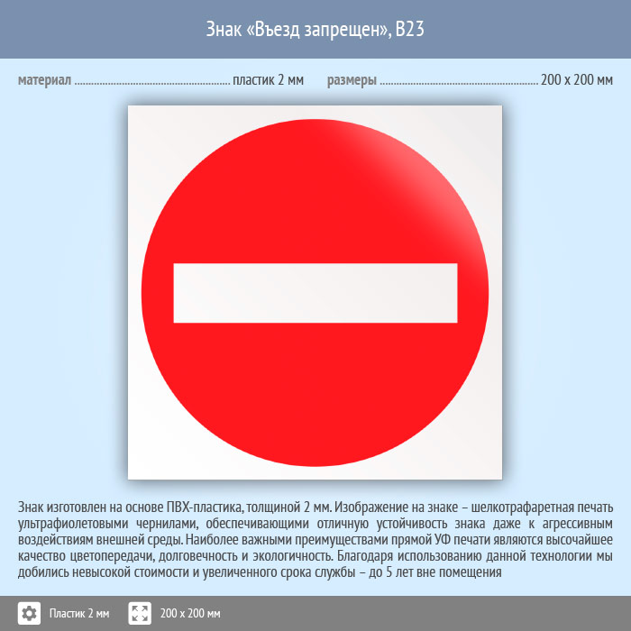 Знак «Въезд запрещен», B23 (пластик, 200х200 мм) в Пензе купить
