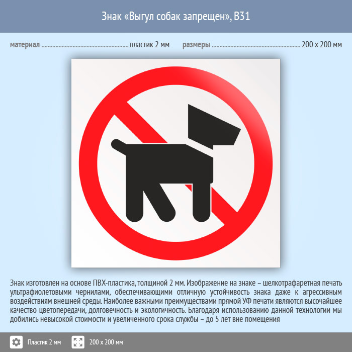 Знак «Выгул собак запрещен», B31 (пластик, 200х200 мм) в Пензе купить