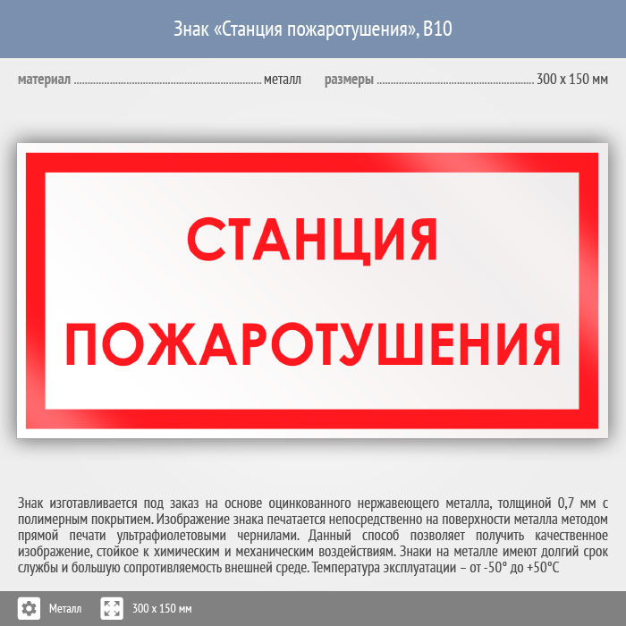 Знак «Станция пожаротушения», B10 (металл, 300х150 мм) в Пензе купить