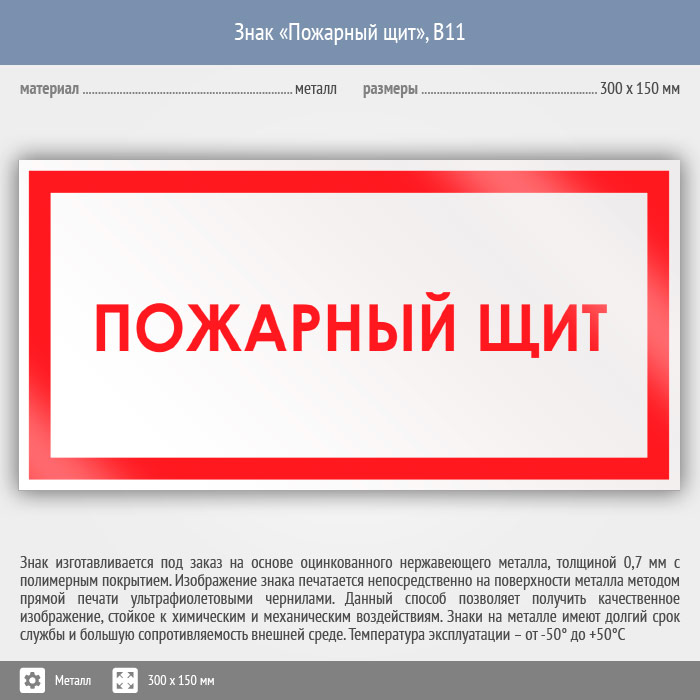 Знак «Пожарный щит», B11 (металл, 300х150 мм) в Пензе купить