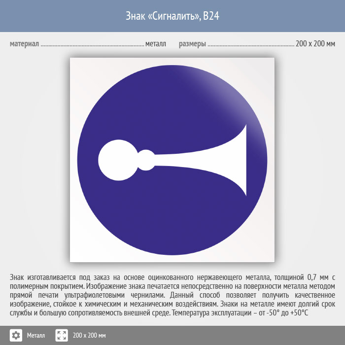 Знак «Сигналить», B24 (металл, 200х200 мм) в Пензе купить