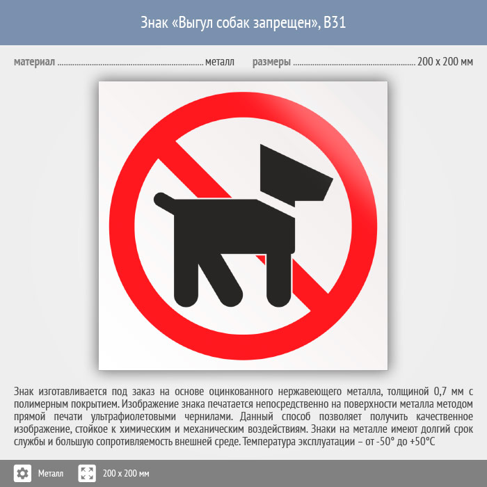 Знак «Выгул собак запрещен», B31 (металл, 200х200 мм) в Пензе купить
