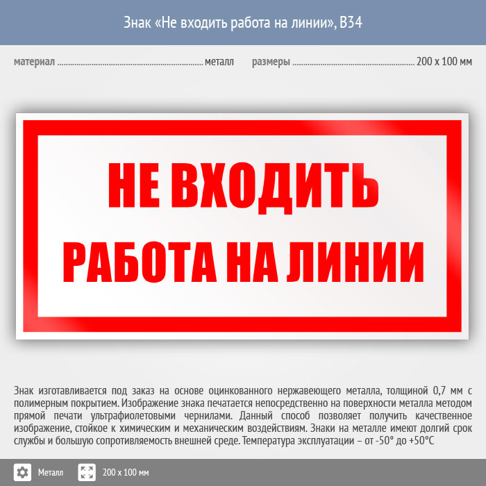 Знак «Не входить работа на линии», B34 (металл, 200х100 мм) в Пензе купить