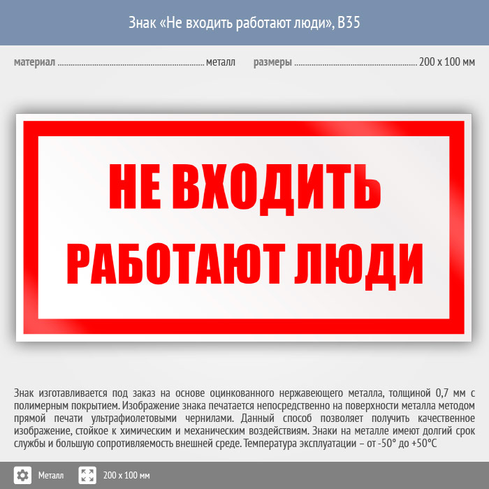 Знак «Не входить работают люди», B35 (металл, 200х100 мм) в Пензе купить