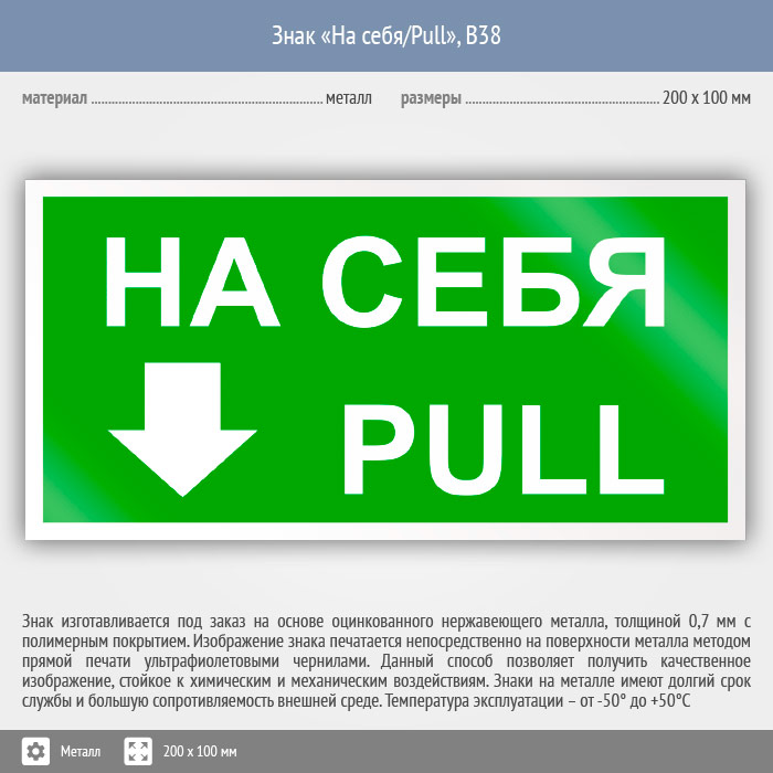 Знак «На себя/Pull», B38 (металл, 200х100 мм) в Пензе купить