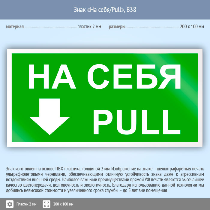 Знак «На себя/Pull», B38 (пластик, 200х100 мм) в Пензе купить