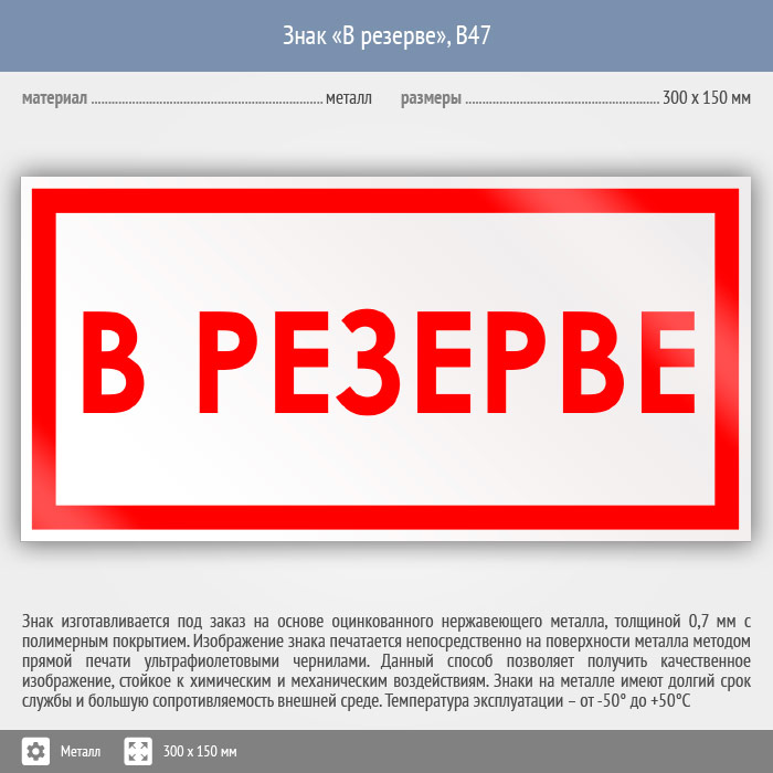 Знак «В резерве», B47 (металл, 300х150 мм) в Пензе купить