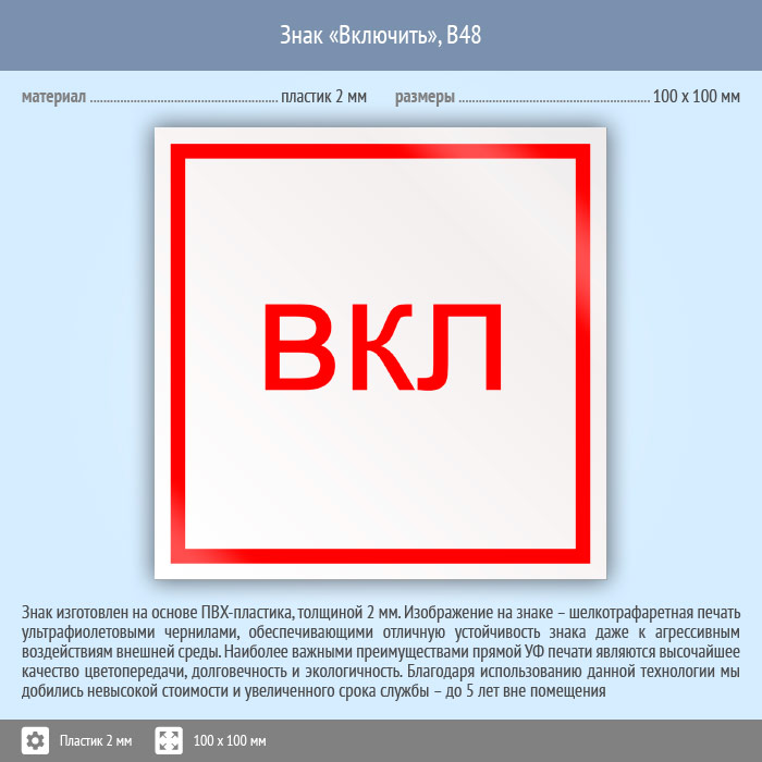Знак «Включить», B48 (пластик, 100х100 мм) в Пензе купить