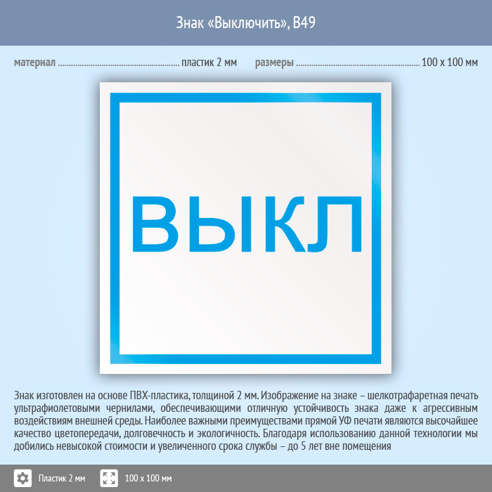 Знак «Выключить», B49 (пластик, 100х100 мм) в Пензе купить