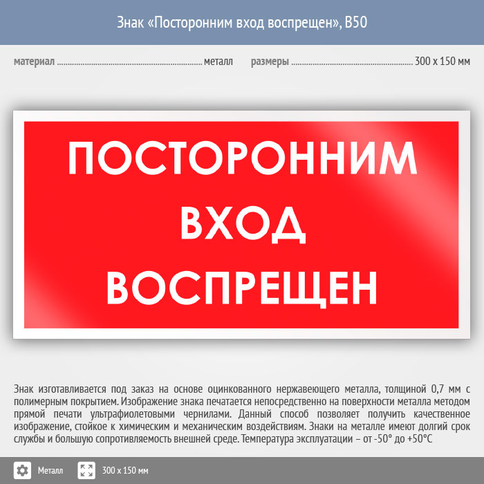 Знак «Посторонним вход воспрещен», B50 (металл, 300х150 мм) в Пензе купить