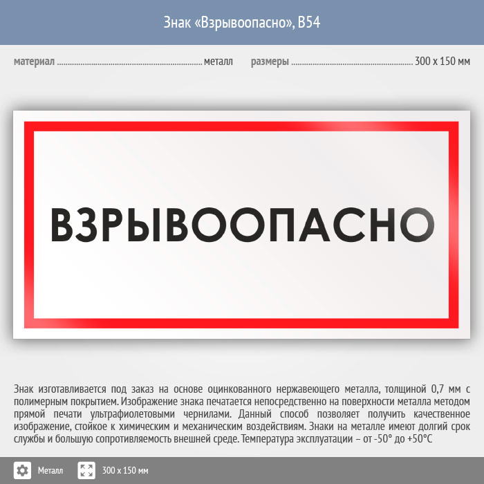 Знак «Взрывоопасно», B54 (металл, 300х150 мм) в Пензе купить