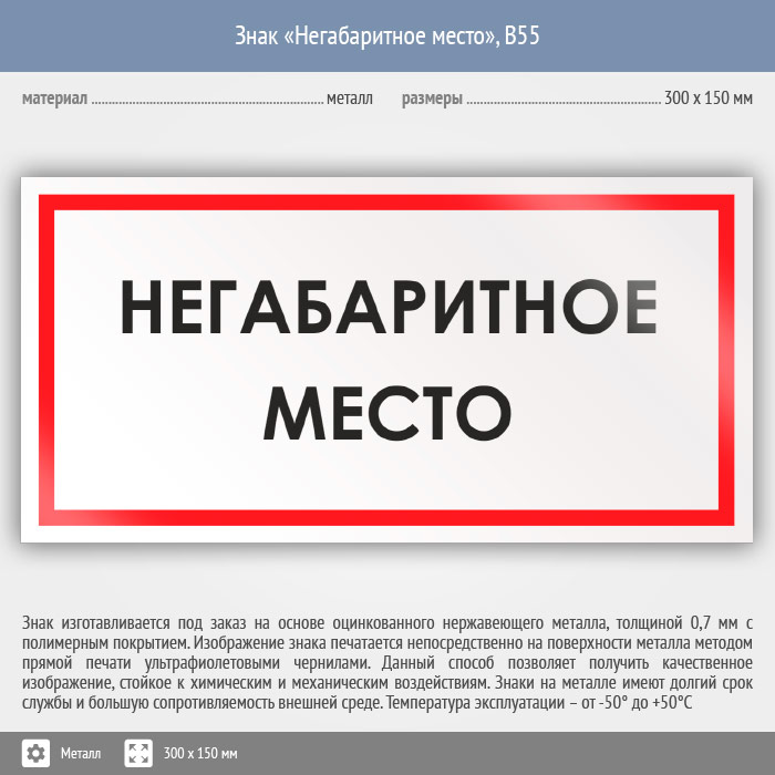 Знак «Негабаритное место», B55 (металл, 300х150 мм) в Пензе купить
