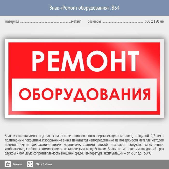 Знак «Ремонт оборудования», B64 (металл, 300х150 мм) в Пензе купить