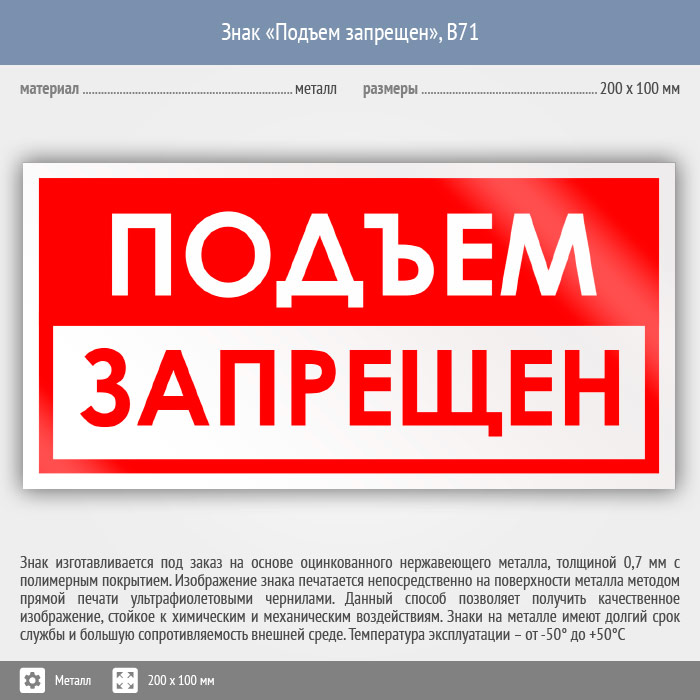 Знак «Подъем запрещен», B71 (металл, 200х100 мм) в Пензе купить
