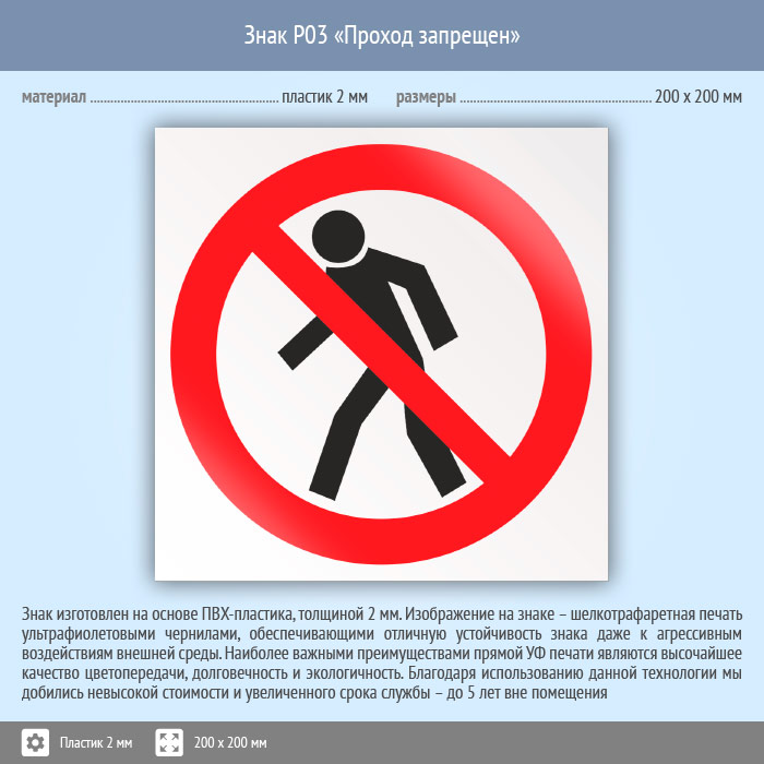Знак P03 «Проход запрещен» (пластик, 200х200 мм) в Пензе купить