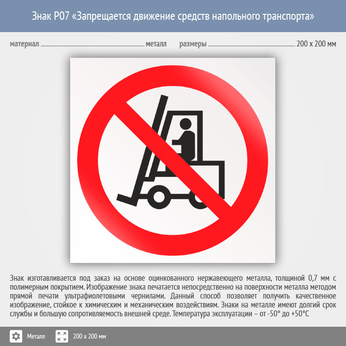 Знак P07 «Запрещается движение средств напольного транспорта» (металл, 200х200 мм) в Пензе купить