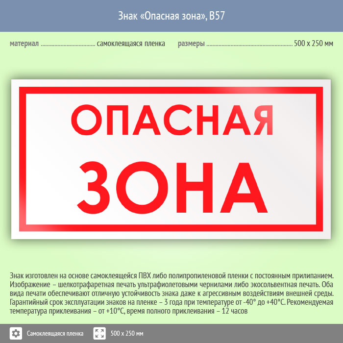 Знак «Опасная зона», B57 (пленка, 500х250 мм)