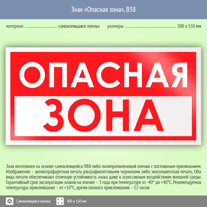 Знак «Опасная зона», B58 (пленка, 300х150 мм)