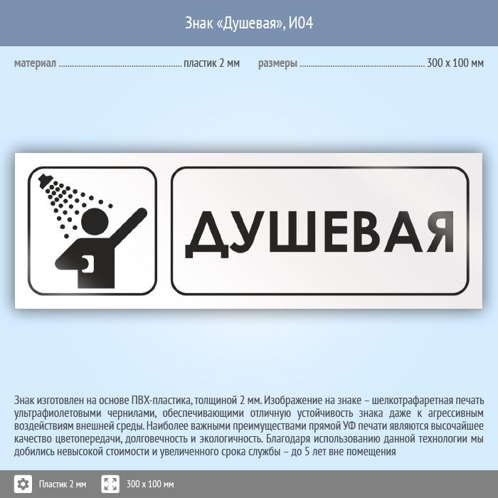 Знак «Душевая», И04 (пластик, 300х100 мм) в Пензе купить
