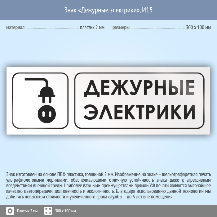 Знак «Дежурные электрики», И15 (пластик, 300х100 мм) в Пензе купить