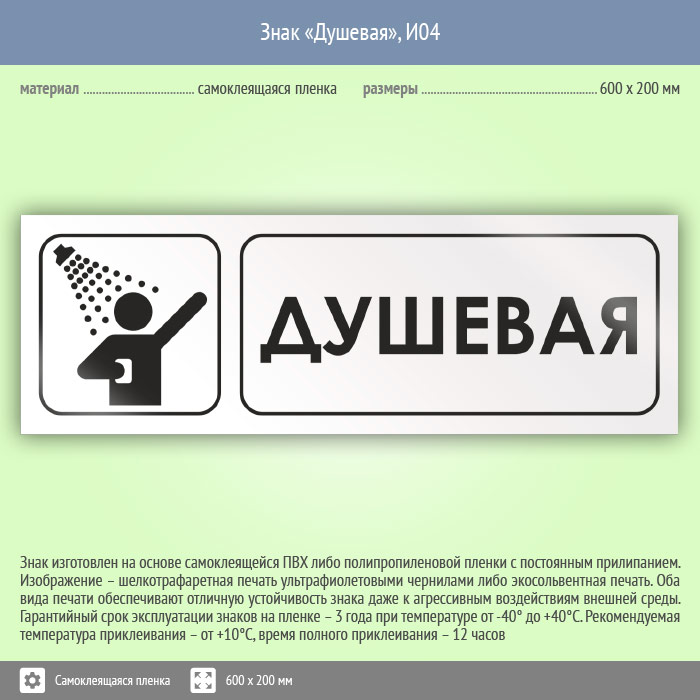 Знак «Душевая», И04 (пленка, 600х200 мм) в Пензе купить