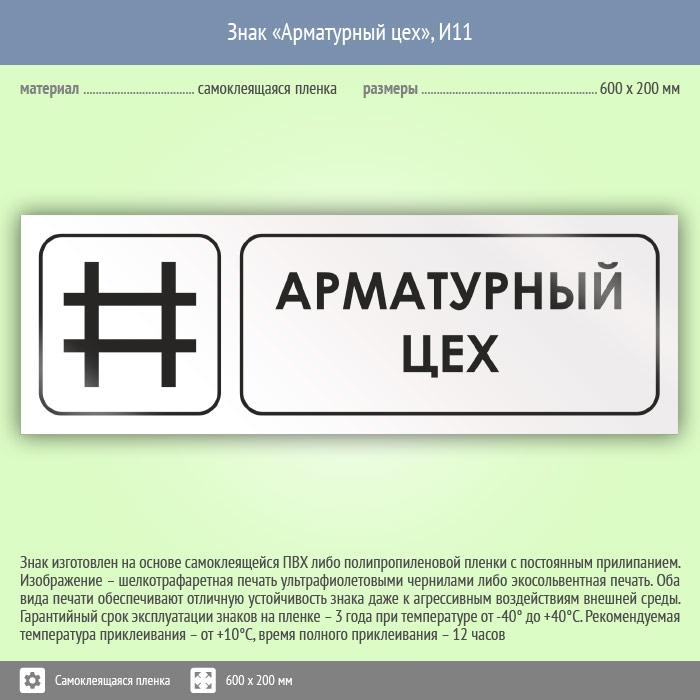 Знак «Арматурный цех», И11 (пленка, 600х200 мм) в Пензе купить
