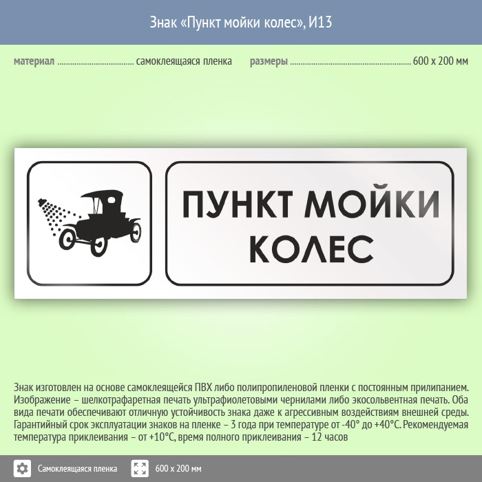 Знак «Пункт мойки колес», И13 (пленка, 600х200 мм) в Пензе купить