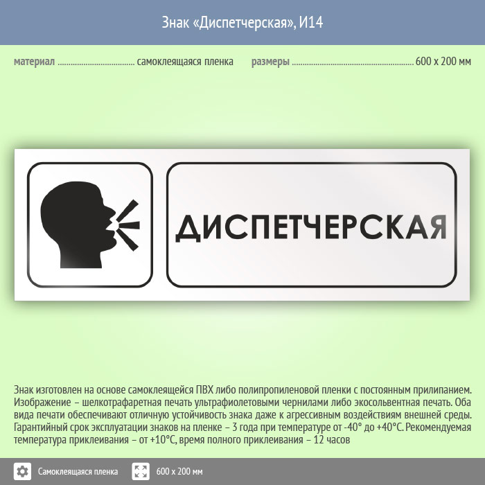 Знак «Диспетчерская», И14 (пленка, 600х200 мм) в Пензе купить