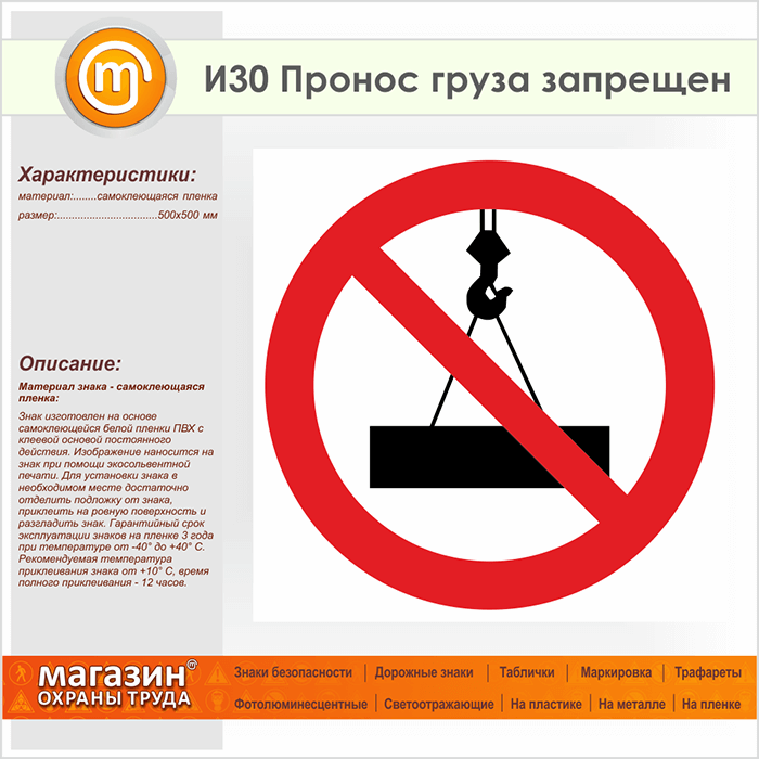 Знак «Пронос груза запрещен», И30 (пленка, 500х500 мм) в Пензе купить