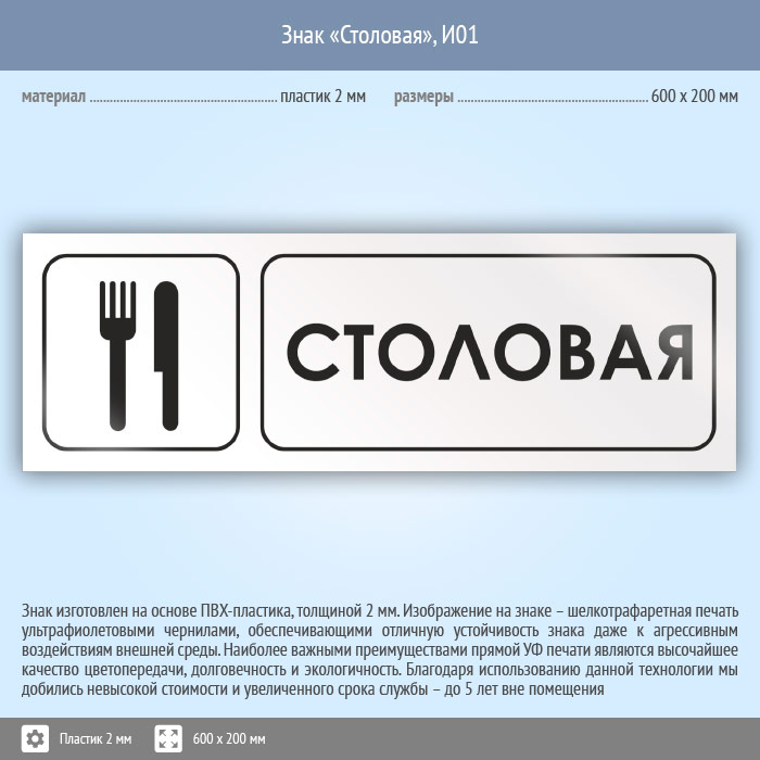 Знак «Столовая», И01 (пластик, 600х200 мм) в Пензе купить