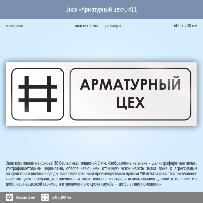 Знак «Арматурный цех», И11 (пластик, 600х200 мм) в Пензе купить