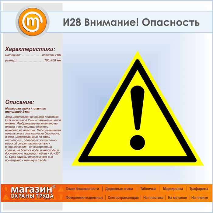 Знак «Внимание! Опасность», И28 (пластик, сторона 700 мм) в Пензе купить