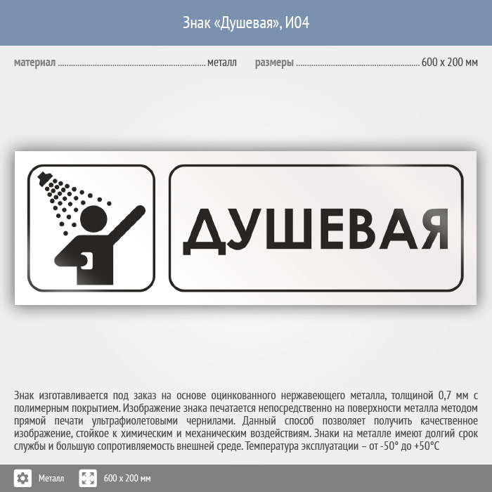 Знак «Душевая», И04 (металл, 600х200 мм) в Пензе купить
