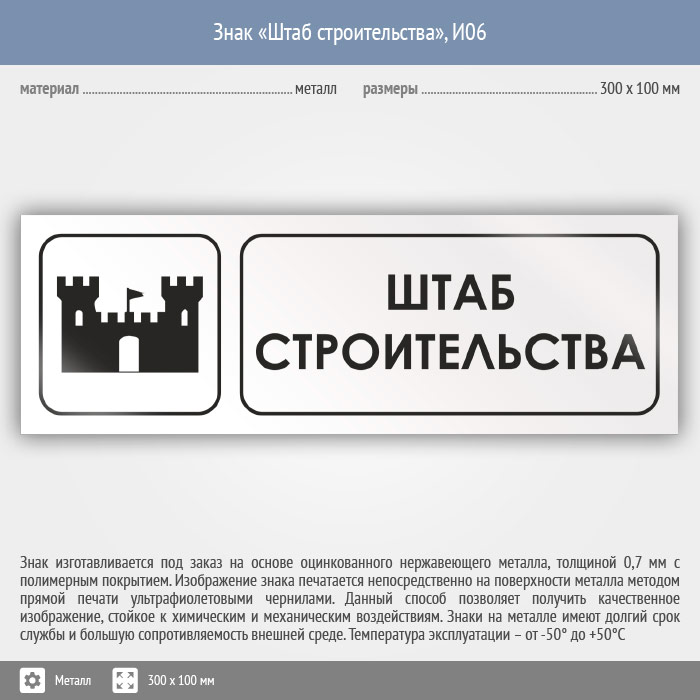 Знак «Штаб строительства», И06 (металл, 300х100 мм) в Пензе купить