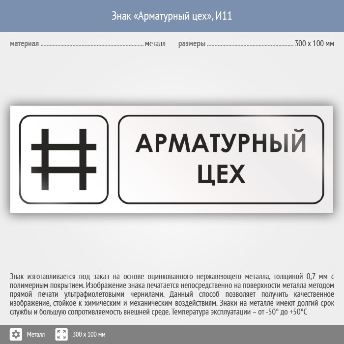 Знак «Арматурный цех», И11 (металл, 300х100 мм) в Пензе купить
