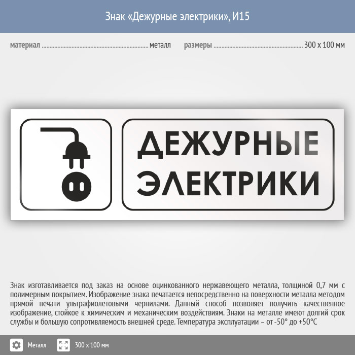 Знак «Дежурные электрики», И15 (металл, 300х100 мм) в Пензе купить