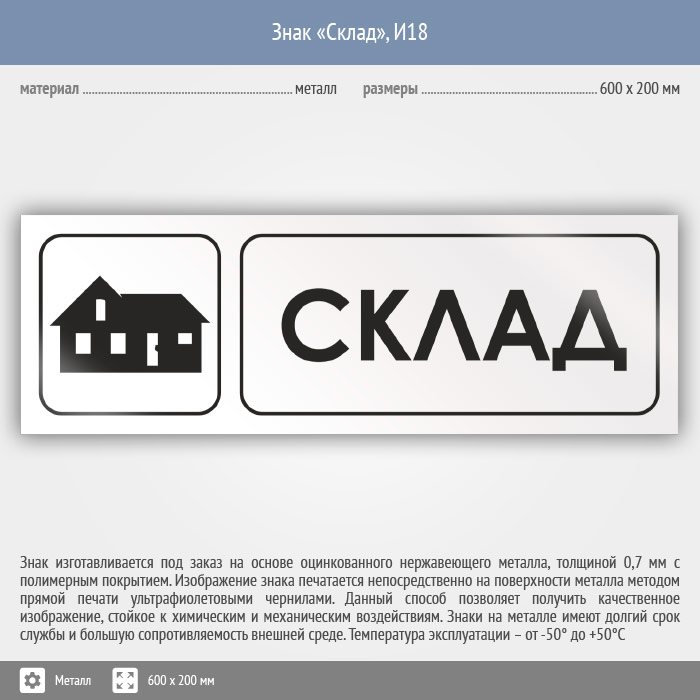 Знак «Склад», И18 (металл, 600х200 мм) в Пензе купить
