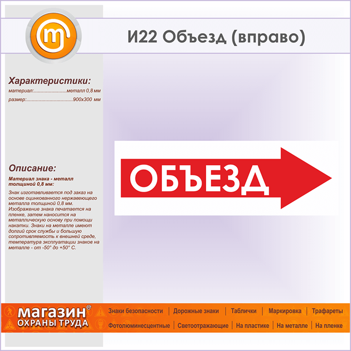Знак «Объезд (вправо)», И22 (металл, 900х300 мм) в Пензе купить