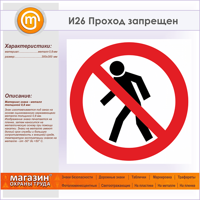 Знак «Проход запрещен», И26 (металл, 300х300 мм) в Пензе купить