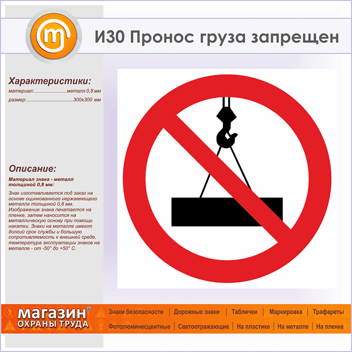 Знак «Пронос груза запрещен», И30 (металл, 300х300 мм) в Пензе купить