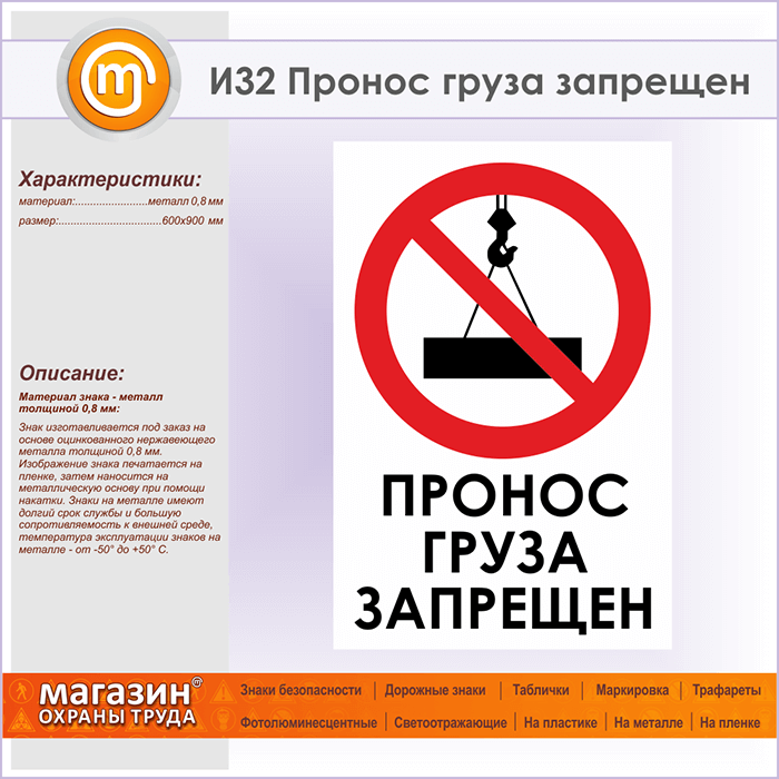 Знак «Пронос груза запрещен», И32 (металл, 600х900 мм) в Пензе купить