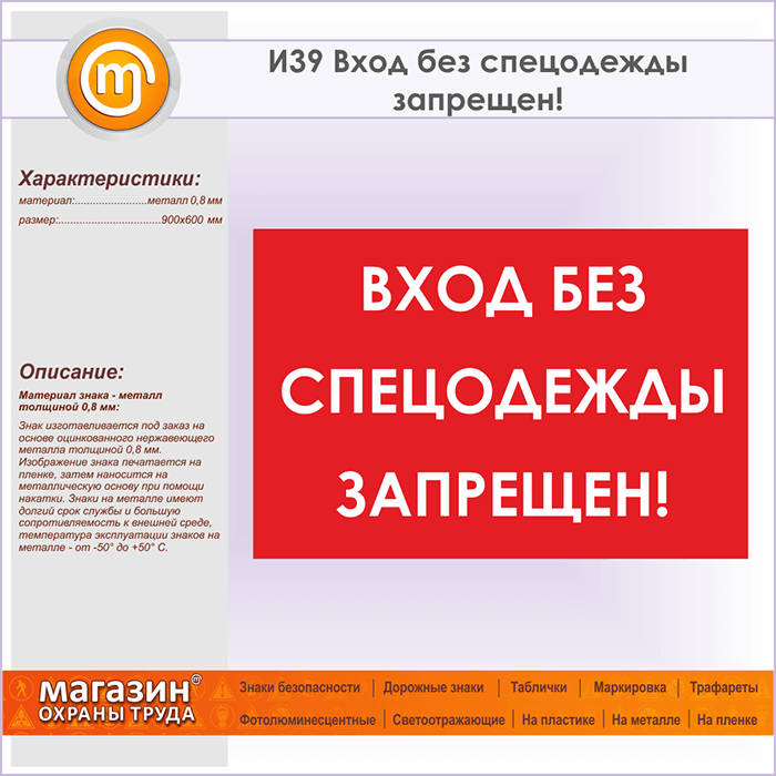 Знак «Вход без спецодежды запрещен!», И39 (металл, 900х600 мм) в Пензе купить