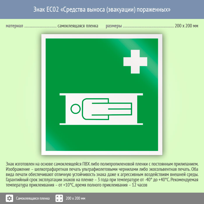 Знак EC02 «Средства выноса (эвакуации) пораженных» (пленка, 200х200 мм) в Пензе купить