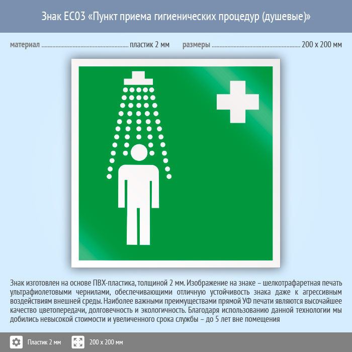 Знак EC03 «Пункт приема гигиенических процедур (душевые)» (пластик, 200х200 мм) в Пензе купить