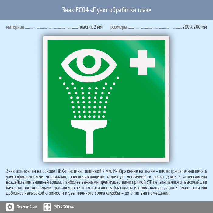 Знак EC04 «Пункт обработки глаз» (пластик, 200х200 мм) в Пензе купить
